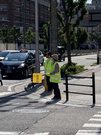 1.信号待ちの時、歩道の安全なところで待つ、道から飛び出して自転車や車に接触することがないように、子ども達の様子の見守りです。
