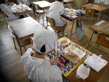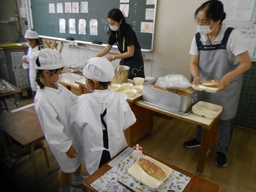 といっても簡易の給食で、おさつパン・チキンスープ・牛乳というメニューでした。
