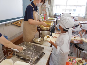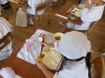 6月1日から始まった給食。この2週間はずっとパンが出ていましたが、ごはんがやっと出てきました。「ごはん大好き」という子もいて、久しぶりという思いの子や、1年生は初めてで嬉しそうでした。