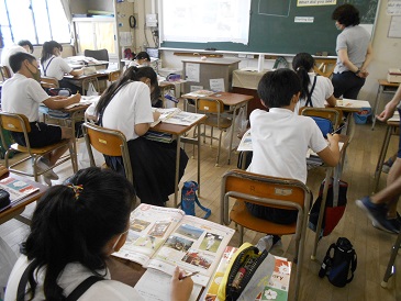 世界の国々の学校生活を英語で紹介する音声を聞きながら、その内容を聞き取ったり、学校生活の特徴を知ったりしていました。