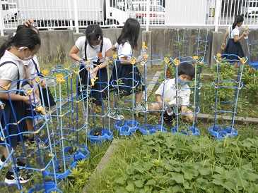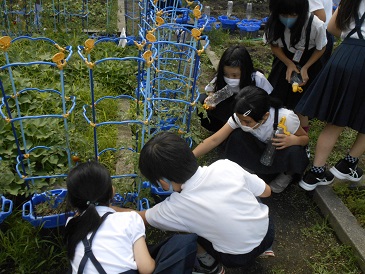 7月2日(木)2年生も学習園に水やりに来ていました。