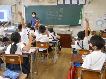 7月3日(金)5年生が外国語「My birthday is in January.」の学習をしていました。