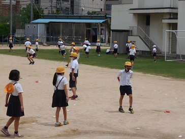 7月8日(水)昨夜からの雨が降り止み、水はけのよい運動場は昼休みには遊べるようになりました。多くの子ども達が元気に外で活動していました。