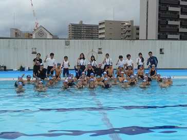 最初に記念撮影をして、その後久しぶりのプール水泳の感触を確かめました。