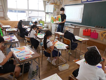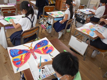 7月13日(月)3年生が図画工作科「カラフルなチョウ」の学習をしていました。