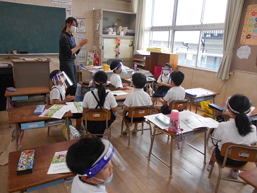 7月13日(月)2年生が音楽科「朝のリズム」の学習で、音楽に合わせてリズム遊びを楽しんでいました。