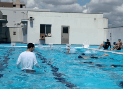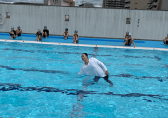 まず、千葉さんが模範の泳ぎ方を見せていただきました。みんなもきれいなフォームに感動し、拍手が起きました。