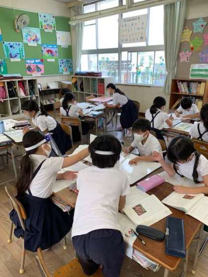 2年生が国語の時間に、「サツマイモのそだて方」について学習しています。2つの文章の書き方の違いについての学習ですが、この日は1つ目の文章のよいところについてグループで話し合い活動をしました。いろいろな考えを知ることができました。