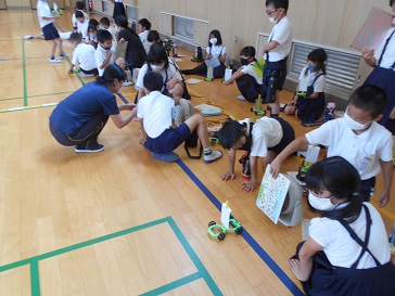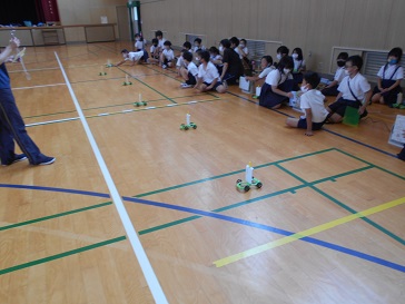 7月20日(月)3年生が体育館で理科の学習をしていました。