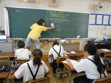 7月22日(水)6年生が算数科「円の面積」の学習を3分割の少人数でしていました。