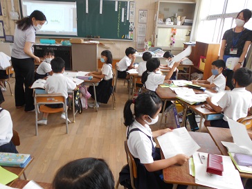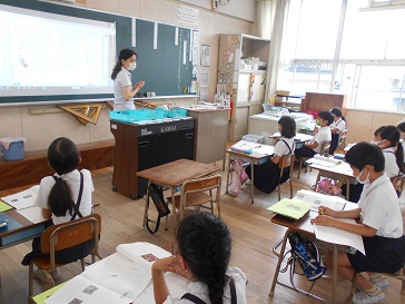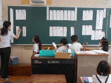 7月28日(火)2年生が国語科「サツマイモのそだて方」の学習をしていました。