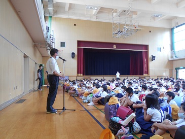 新型コロナウィルスによる感染防止で、いつもと違う1学期でしたが、子ども達は学習に運動によく頑張りました。まずはその頑張りを称えました。