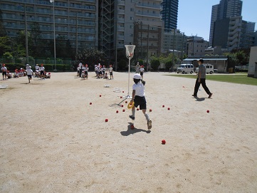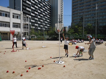 走る途中に玉入れのカゴがあり、その中に紅白の玉を入れてリレーをつないでいく楽しいルールです。なかなか難しそうでしたが、これからも練習をしていくようです。