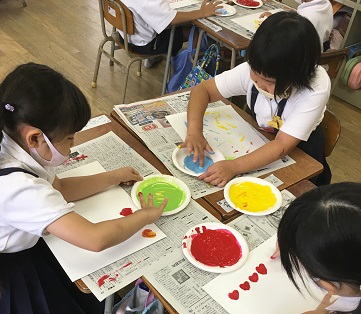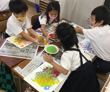 9月9日(水)1年生が図画工作科「さわってかくのきもちいい!」の学習をしていました。