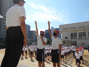 開会式と閉会式での誓いのことばや参加賞授与、児童のことば、ラジオ体操などを練習しました。