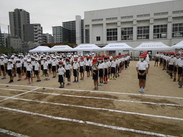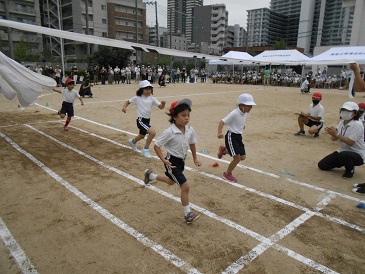 保護者の皆様が観覧される中、どの学年も一生懸命に個人走やリレーで運動場を駆け巡りました。