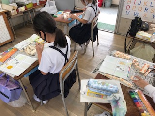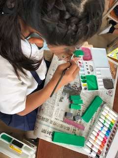 木と釘で作品を作る「くぎうち トントン」の学習では、イメージにあった色を先に着色する作り方もあります。個々に工夫をしています。