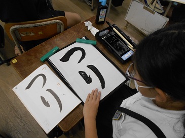10月9日(金)3年生が書写の学習で「つり」という字に取り組んでいました。
