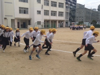 今日は、3年が社会見学でいませんが、1年生と5年生が音楽に合わせて元気よく走りました。