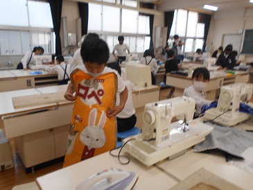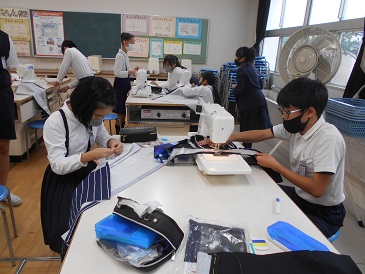 10月16日(金)6年生が家庭科「エプロンづくり」の学習をしていました。