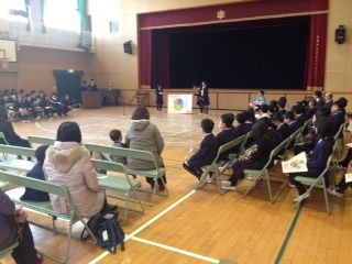 今日のテーマは「生活リズムを考えるのは・・・今でしょ!」です。児童保健委員会が2学期末にとったアンケートをもとに、子どもたちがふんするバットリズムンやグッドリズムン博士が登場し、睡眠の大切さやテレビやゲームの時間をきちんと決めることが大切であることなどの提案がありました。