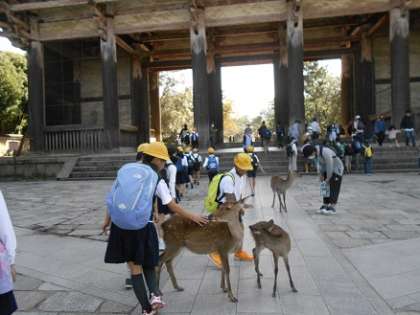東大寺で見学をした後、春日野園地でお弁当を食べ、興福寺の五重塔を見て、帰ってきました。