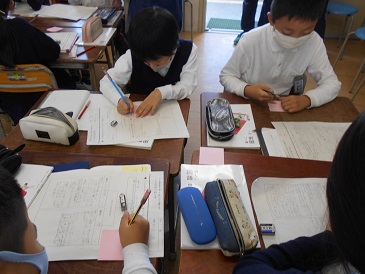 単元は「くらしの中の和と洋について調べよう」でした。教科書で学習したことをもとに、自分たちが資料をもとに調べた和と洋について、グループで話し合い、集めた情報をポイントで整理していく学習でした。難しい内容でしたが、みんな真剣に考えを出し合い、付箋を貼ったり、紙に整理したりしていました。