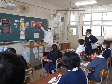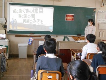 同じく、3時間目に6年1組で歯と口の健康教室が行われました。