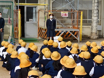 今週は「思いやりの気持ちを深める週間」です。昨年度のこの週間にした思いやりの気持ちを感じた手紙を紹介しました。「雨が降ってきたとき一緒に入れてくれた。」「体育の授業で、優しくボールを投げてくれた。」「運動場でこけた時、体についた砂を払ってくれた。」など心温まるエピソードを紹介しました。このような思いやりの輪が今年も大きく広がってほしいと言いました。