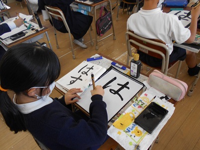 4年生が書写の時間に「はす」という字を学んでいました。