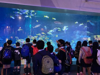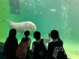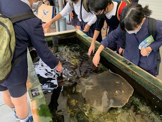 鳥羽水族館に着きました。大水槽の中を泳ぐ魚たちや大きなジュゴンを見たり、タッチプールでエイやタコを触りました。