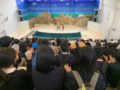 可愛いラッコの泳ぎやアシカショーも見ました。楽しい水族館での思い出をつくり、みんな元気に宿舎に向かいました、