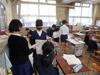 3年生は国語で3つの教室に分かれて「話したいな、わたしのすきな時間」の学習に取り組んでいます。今日は発表に備えての練習です。ただ読むだけではなく、相手に伝わるような発表にするためにくりかえし練習をしていました。