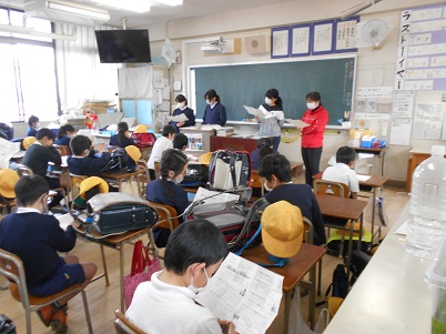 12月9日(水)6時間目に地域子ども会が行われ、地域別分団で登校の様子や冬休みの過ごし方などの話し合いがありました。終了後、登校班ごとに集団下校を行いました。