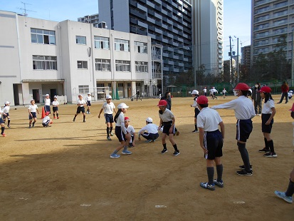 12月18日(金)寒さに負けないで、4年生が体育の学習をしていました。持久走や体ほぐしの運動、ゲームに取り組んでいました。みんなとても元気に楽しんでいました。