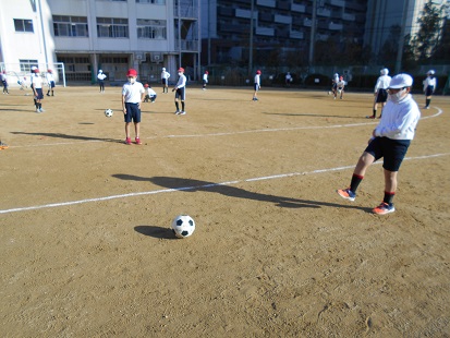 1月15日(金)4年生が体育の時間に「ボールけり」をしていました。