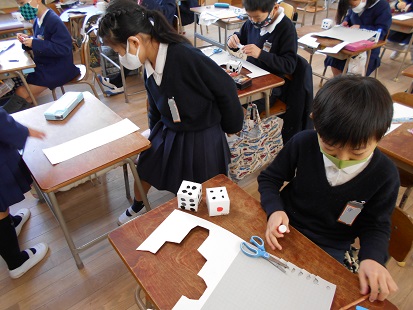 1月20日(水)2年生が生活科の学習で使う、さいころづくりに取り組んでいました。