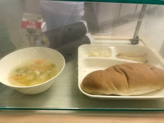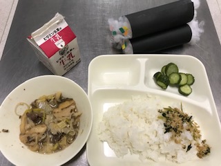 今日は、野菜、ふ、エリンギ入りのすき焼き煮。そして、お肉は近江牛でした。コロナ渦中の影響で、給食でも近江牛が提供される日があります。金曜日には、わかさぎのフライがでました。カリッとフワッと食感よく仕上がっていました。いつも食材から研究されている給食です。感謝して、いただきまーす!