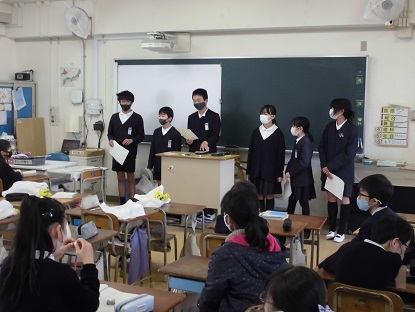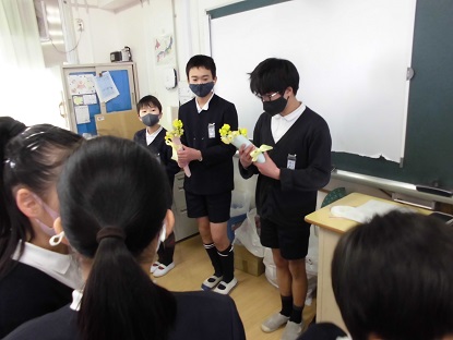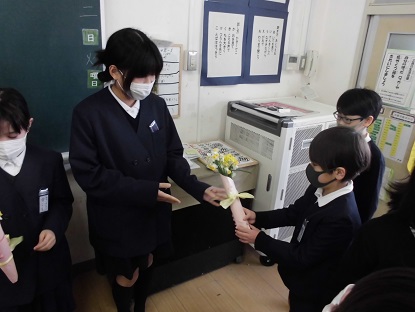 3月2日(火)本年度最終の委員会活動がありました。環境委員会では学習園で育てたスイセンやアブラナの花を委員会でお世話になった6年生に感謝の気持ちを込めて、4・5年生からプレゼントしました。6年生からもお礼の言葉や今後の委員会の活動についてのアドバイスなどが話されました。温かい交流の時間になりました。