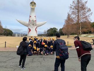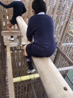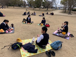 万博記念公園内の自然文化園に移動して、アスレチックを楽しんだあと、広い芝生でお弁当を食べました。よい天気になって本当によかったです。