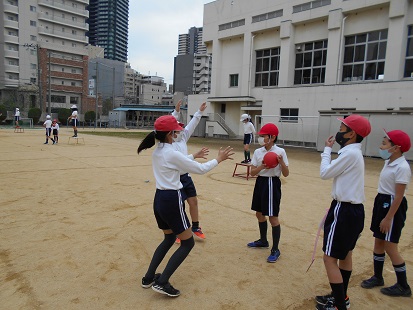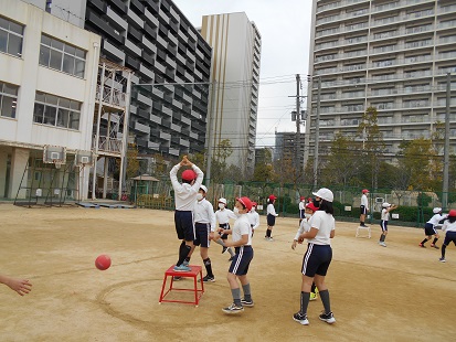 3月9日(火)4年生が体育科「ポートボール」の学習をしていました。味方にボールをうまくパスしながら、ゴールマンにシュートを決められるように頑張っていました。まだ少し寒い中でしたが、みんな活発に活動していました。