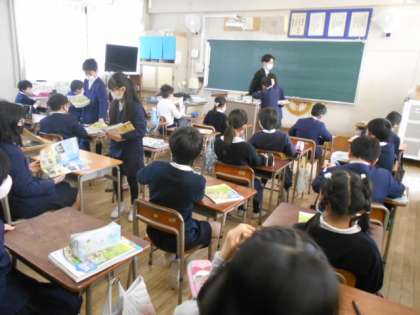 海老江東小の子どもたちは、目を合わせてあいさつする子が多く、とても感じがいいです。写真は上から5−2、4−1、4−2です。