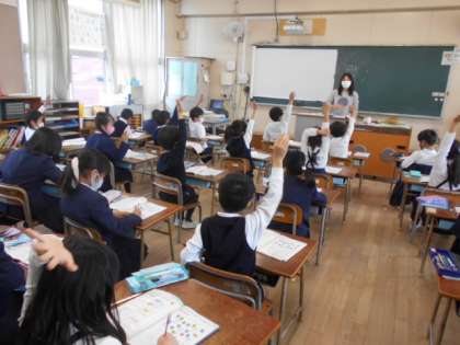 集中して話を聞く、手を挙げてすすんで意見を発表するなどがんばっていました。