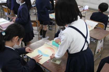 おはじきを使って、ゲームをしながら、学習を進めます。