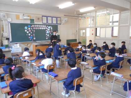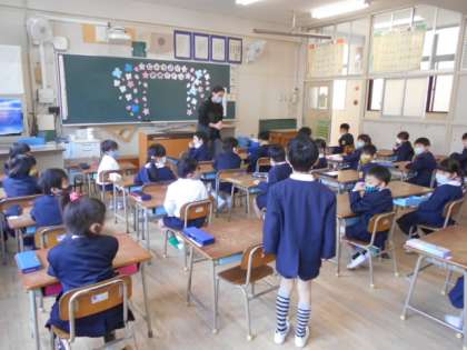 お友達に自分の名前などを言って、「よろしくおねがいします。」で、しめくくれました。