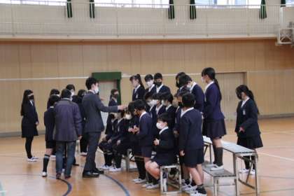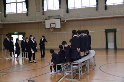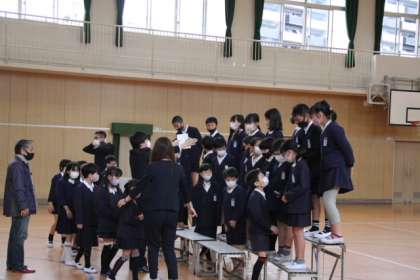 講堂で撮影しました。そのメイキング写真をご覧ください。