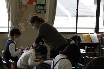 「点対称な図形の描き方を考えよう」というめあてで学習しています。
