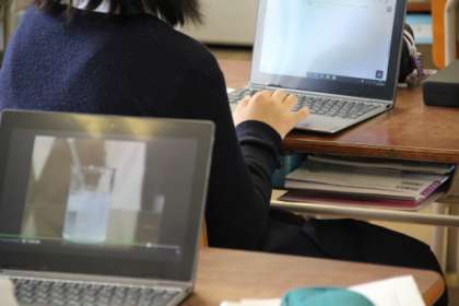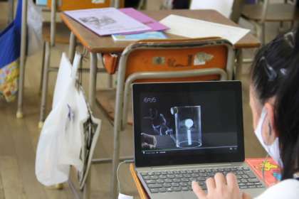 6−2では、NHKのEテレの理科の動画で学習したことを確認している児童が多かったです。写真上、写真下