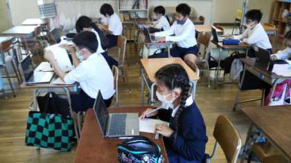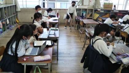 それぞれ課題のプリントで学習や、パソコンを使って調べ学習などをしています。