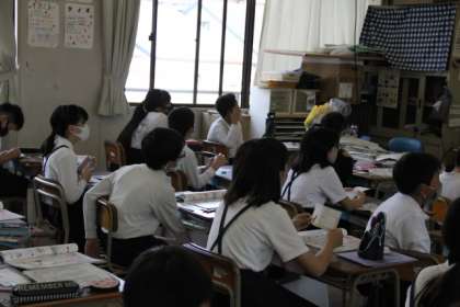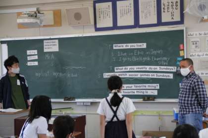 英語の表現に十分慣れてから、それぞれが「日曜日は、ゲームをしています。」「・・野球をしています。」「・・・テレビを見ていますなど、英語で答えていました。